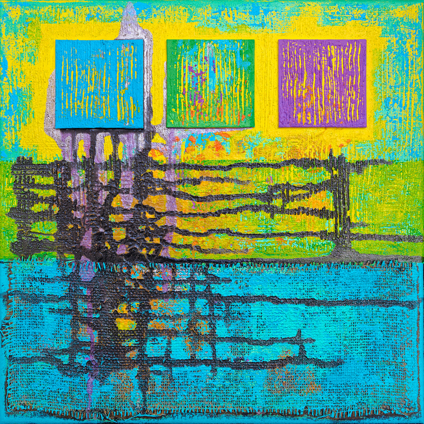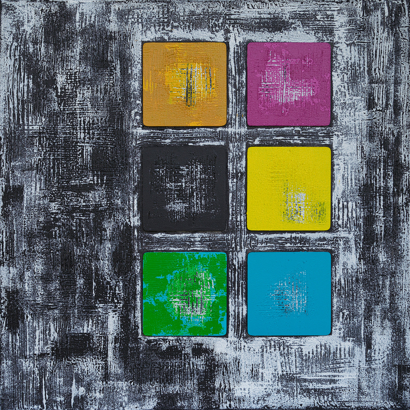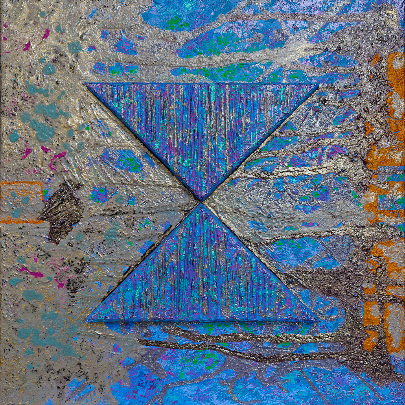 Eléments 10, acrylique, sable, bois et pigments métalliques sur toile, 30x30 cm.